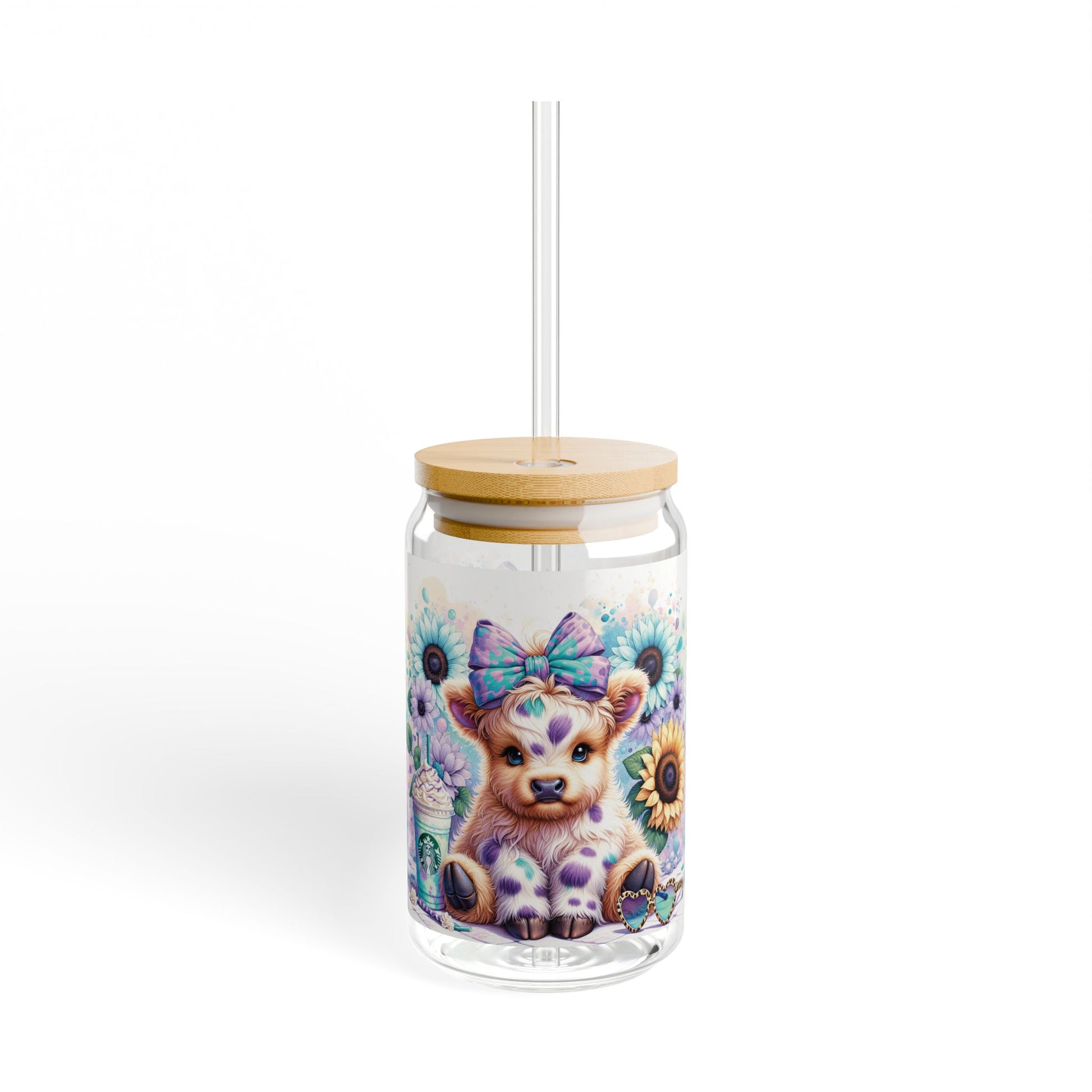 Cute Highland cow with glasses Sipper Glass, 16oz